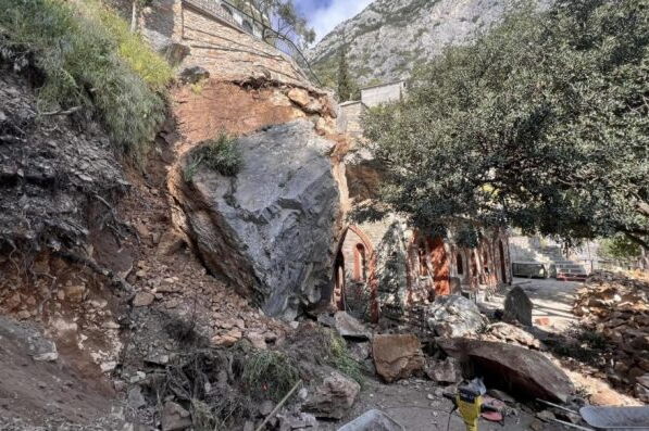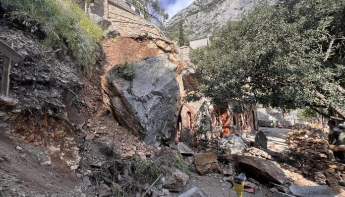 Ein Felssturz hat erhebliche Zerstörungen an der Höhlenkirche der Heiligen Väter Dionysios und Mittrophanos in der Skite Mikri Agia Anna verursacht.